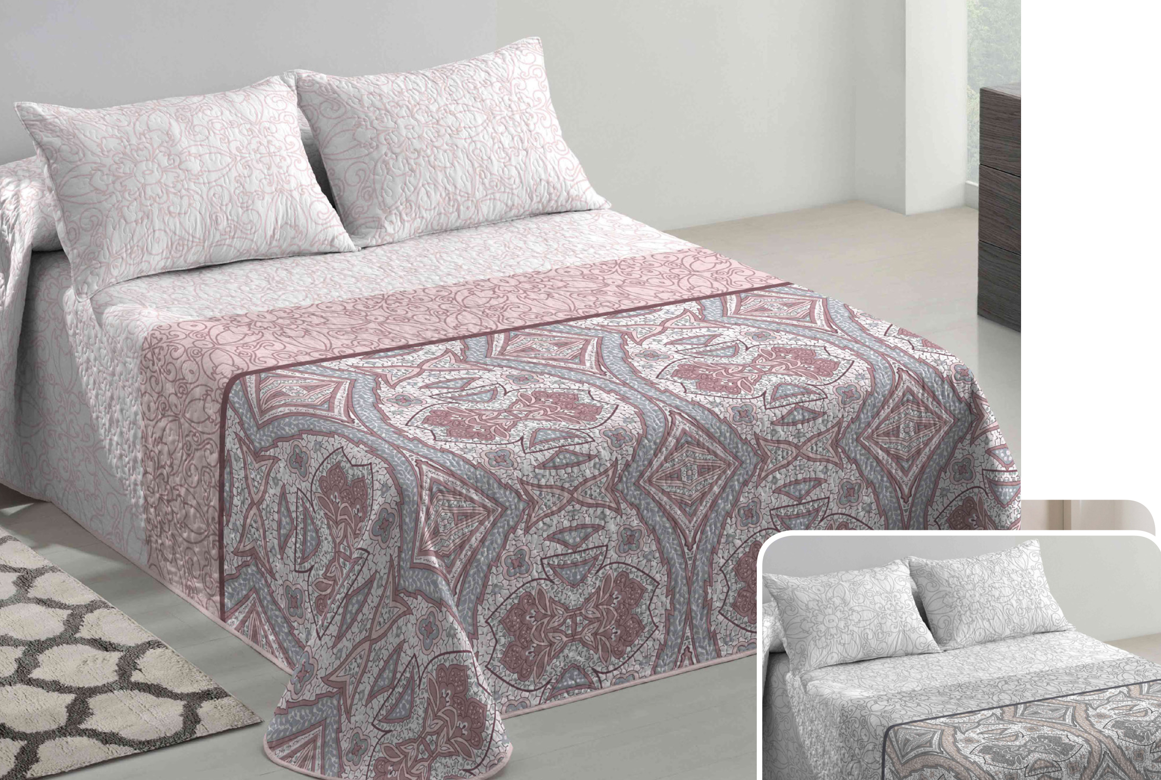 Colchas Boutí de Calidad para vestir su cama elegantemente con diseños exclusivos, Calidad Boutí 100% Pes – Alta Calidad. 70/80/70 Grms, Con Fundas de Almohada 50x70cm