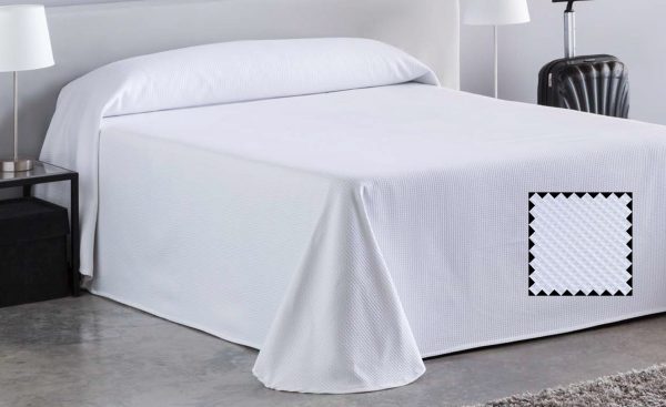 Colcha Nido de Abeja Blanca, composición de tejido 50% algodón / 50% poliéster.